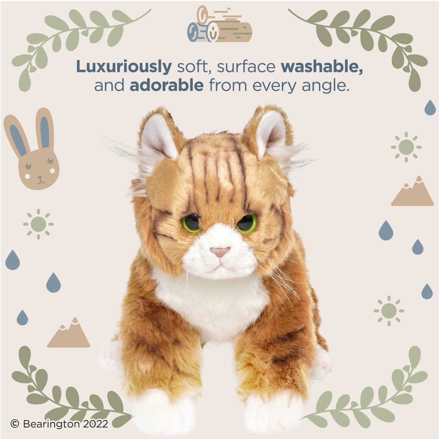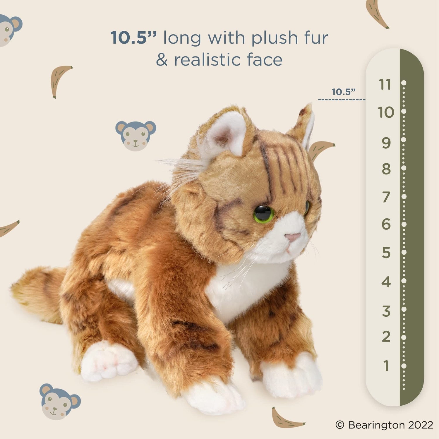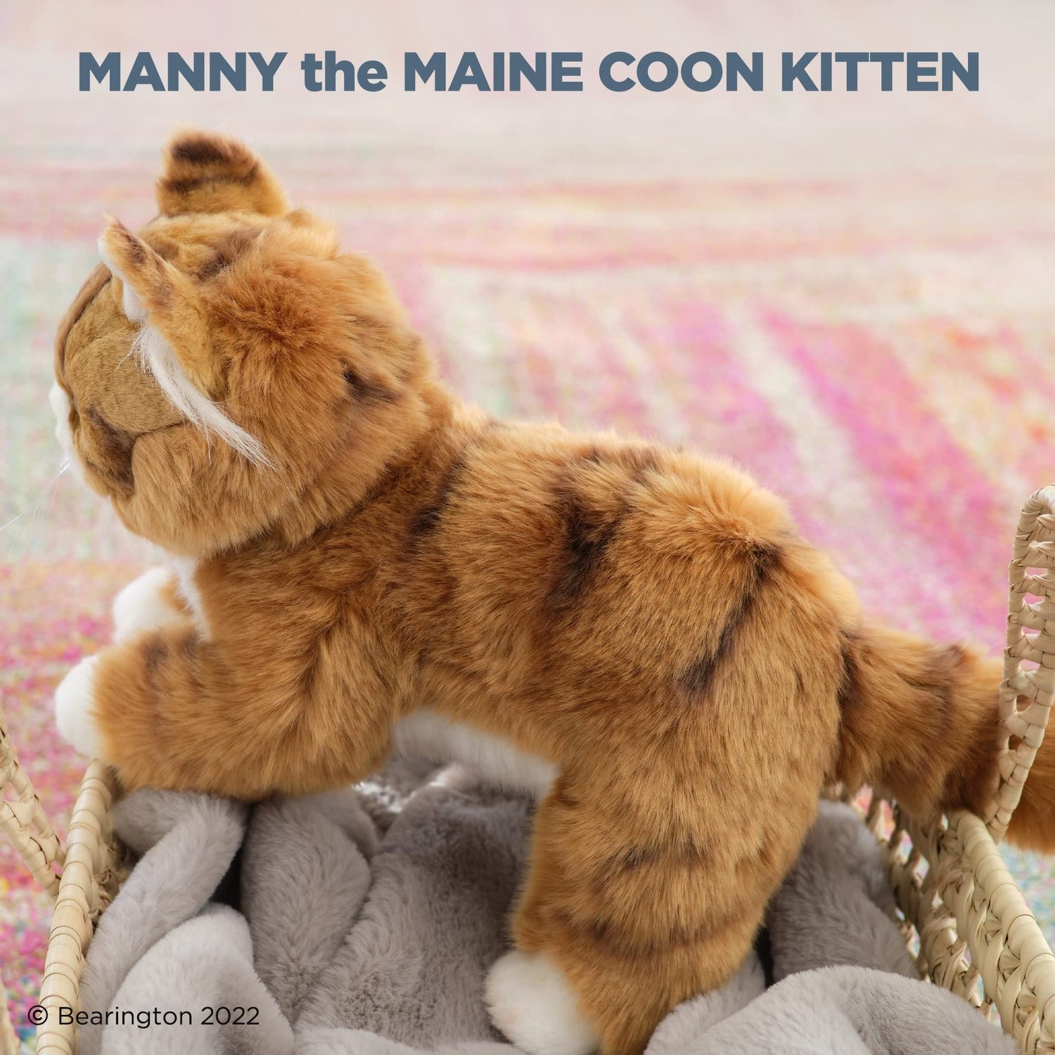 MEET MANNY: One of Bearington's delightful plushies standing at 10.5 inches. His fluffy, cuddly form and adorable looks make him a favorite among babies and kids. Designed with love, this orange cat plush brings the enchanting world of lifelike play to your child's fingertips.