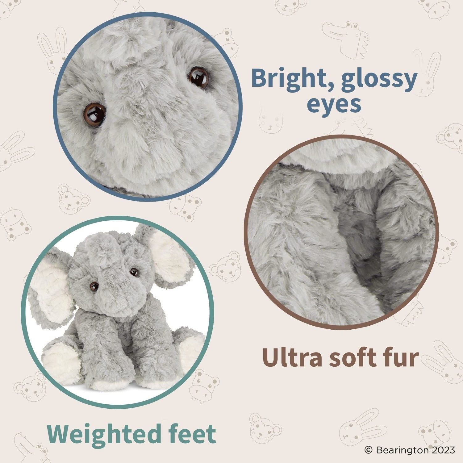 HUGGABLE: Experience the comfort and charm of the baby elephant stuffed animal. Crafted with premium plush materials, it boasts soft fur that's truly irresistible to touch. Excellent craftsmanship guarantees a toy that's as enduring as it's loveable.