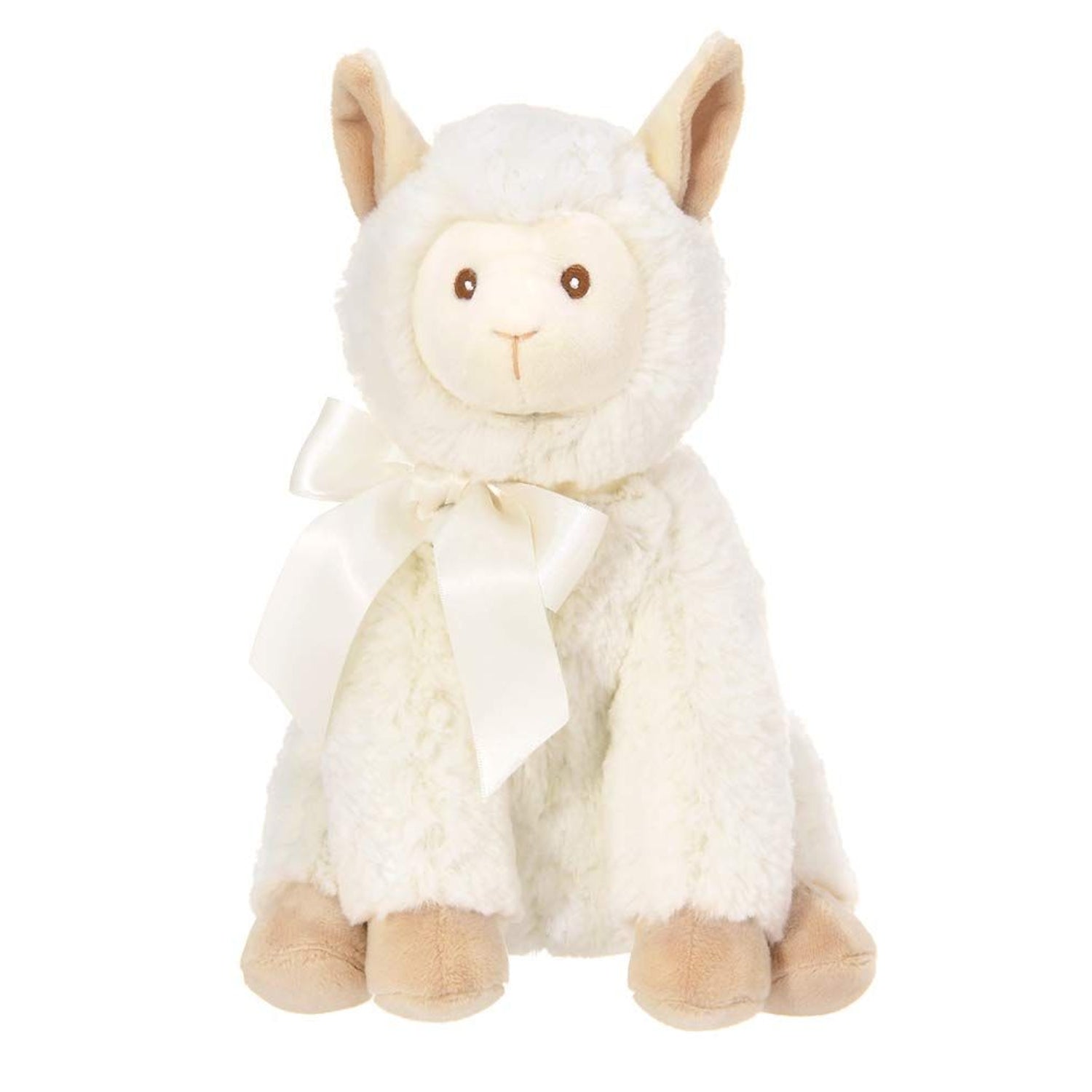 12" adorable creamy white plush llama stuffed animal with cream satin bow