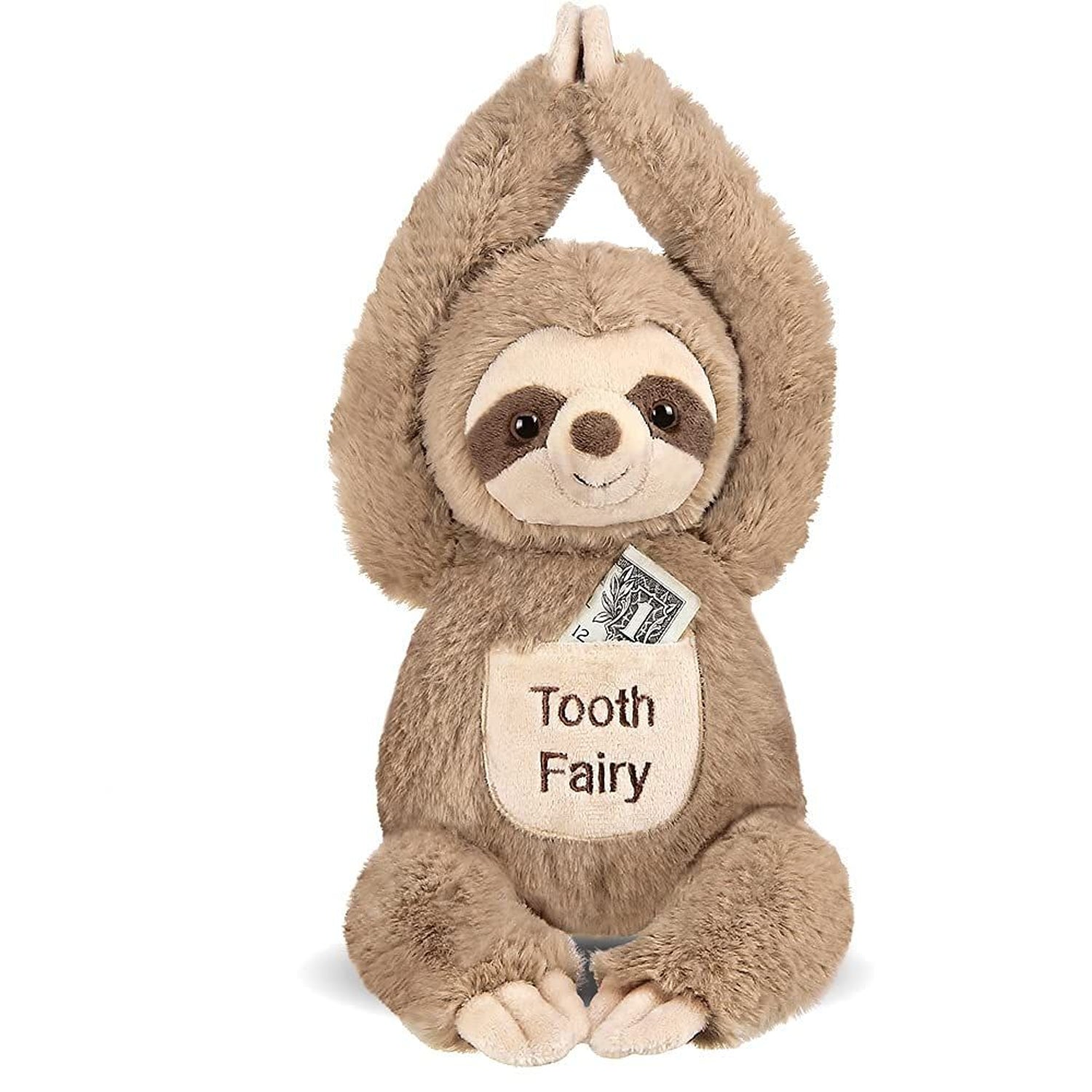 TOOTH FAIRY SLOTH: 12” adorably cute plush tooth fairy sloth with easy to access pocket for tooth and tooth fairy token, surface washable