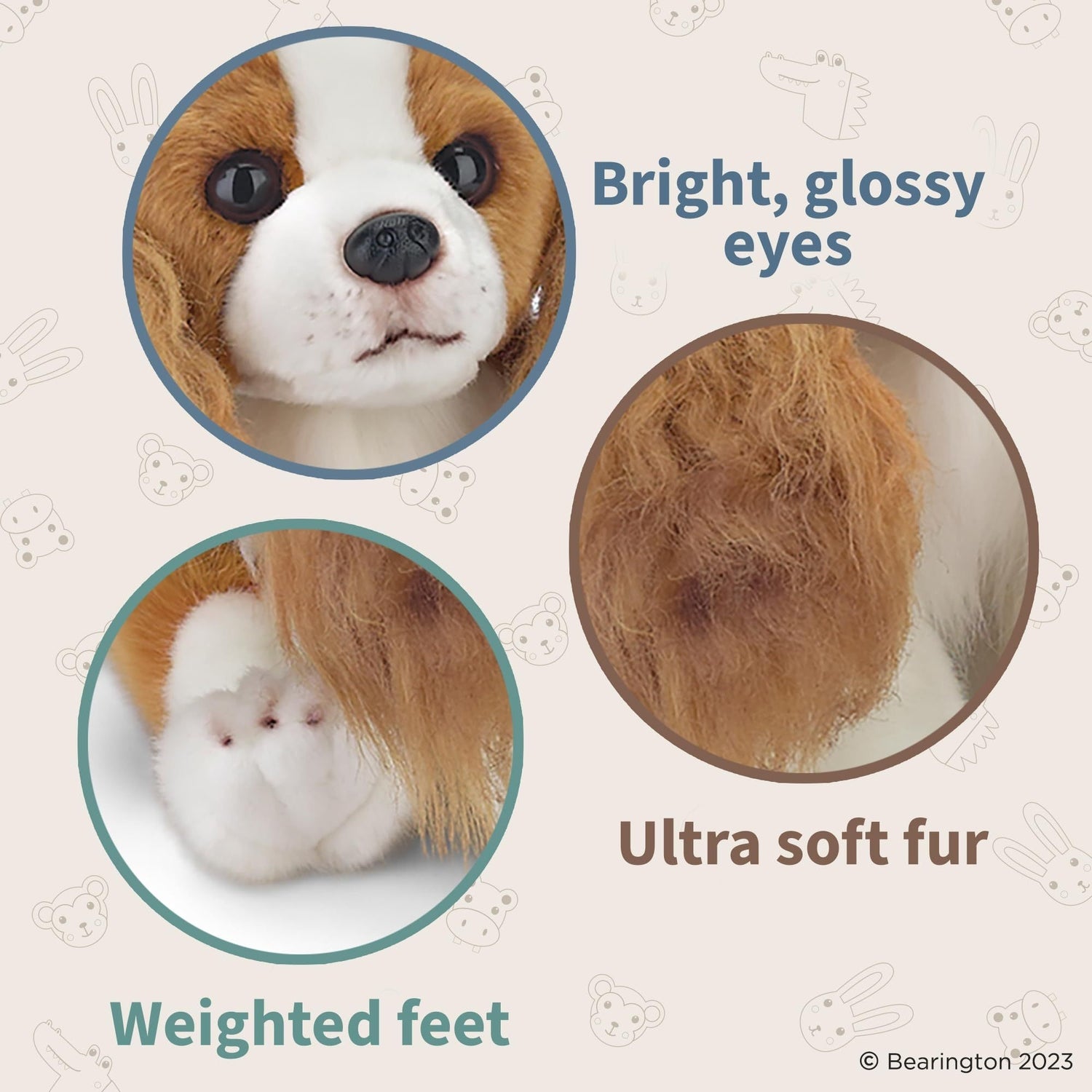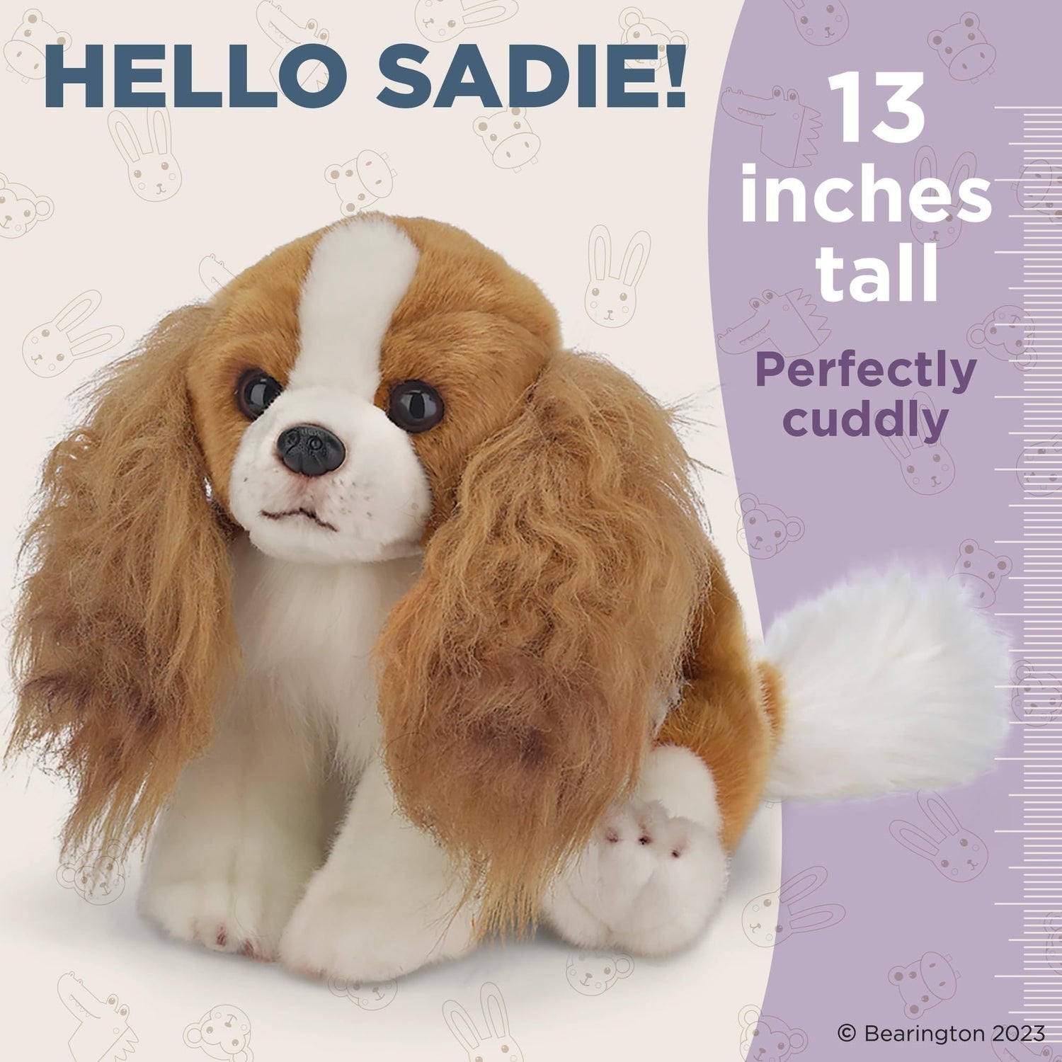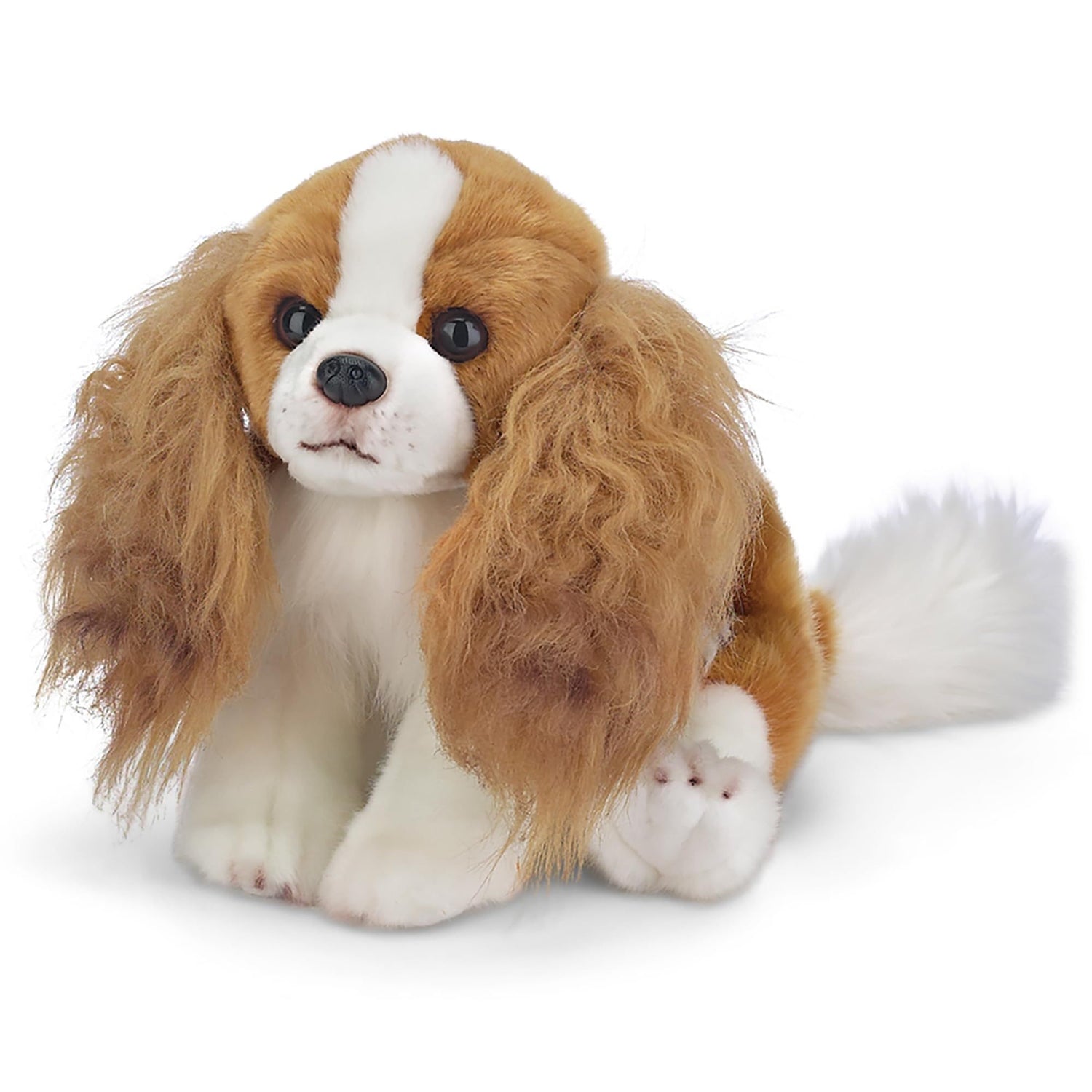 SADIE THE KING CHARLES: Adorably cute King Charles Cavalier puppy dog plush toy with soft fur, sparkling eyes, and a soft floppy body that can be positioned sitting, standing or laying, 13” long