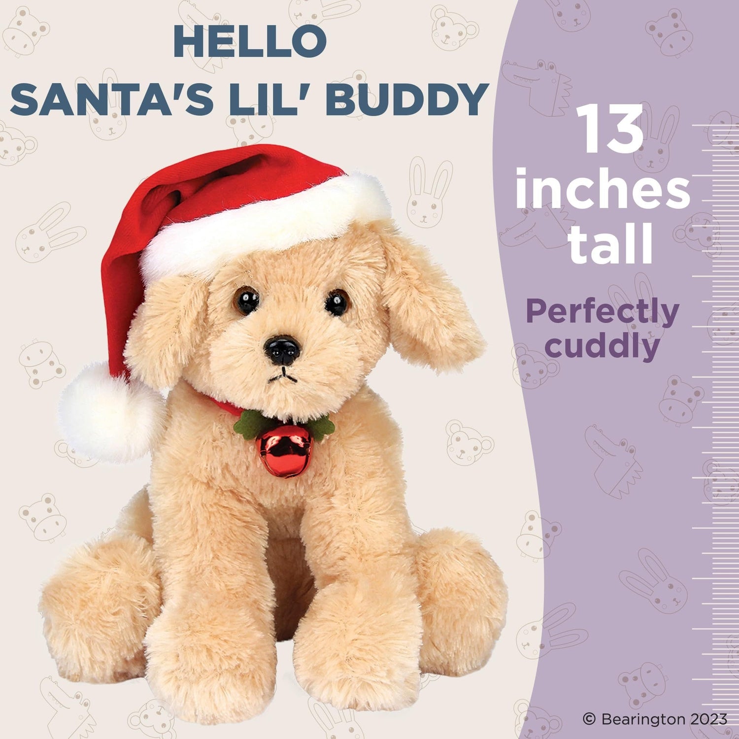 CHARMING CHRISTMAS DOG: Meet the 13" adorable Santa's Lil' Buddy, a musical Christmas dog stuffed animal. With its charming Santa hat of white faux fur trim, this stuffed Christmas dog brings holiday joy through its delightful tunes and cuddly presence.