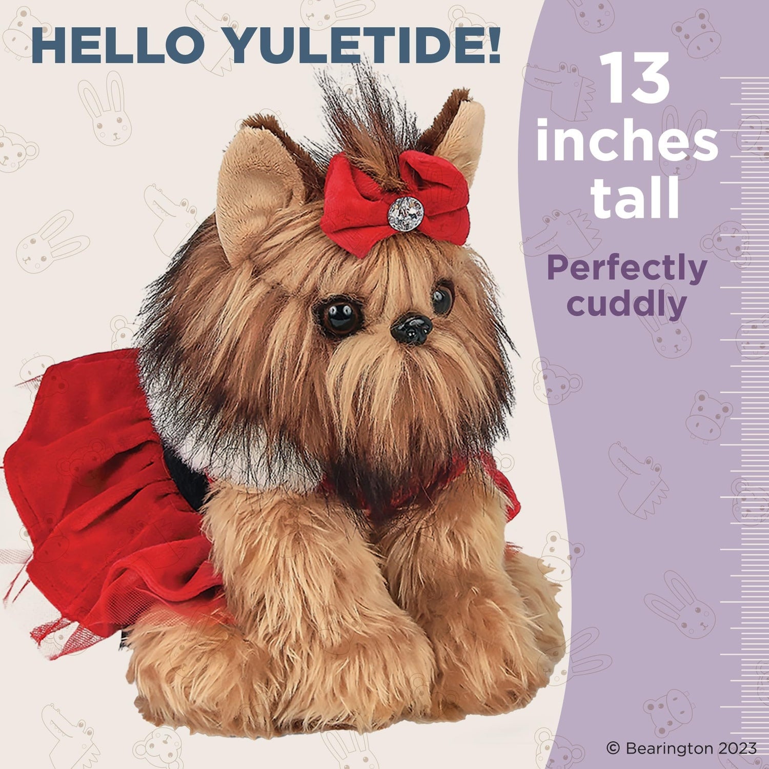 MEET THE YULETIDE YORKIE: A 13-inch cute, fluffy, and adorable dog plushie. Perfect for cozy snuggles, this captivating Yorkie stuffed puppy creates gleeful moments for babies and kids alike. Yuletide Yorkie promises to be a lasting companion over the years.
