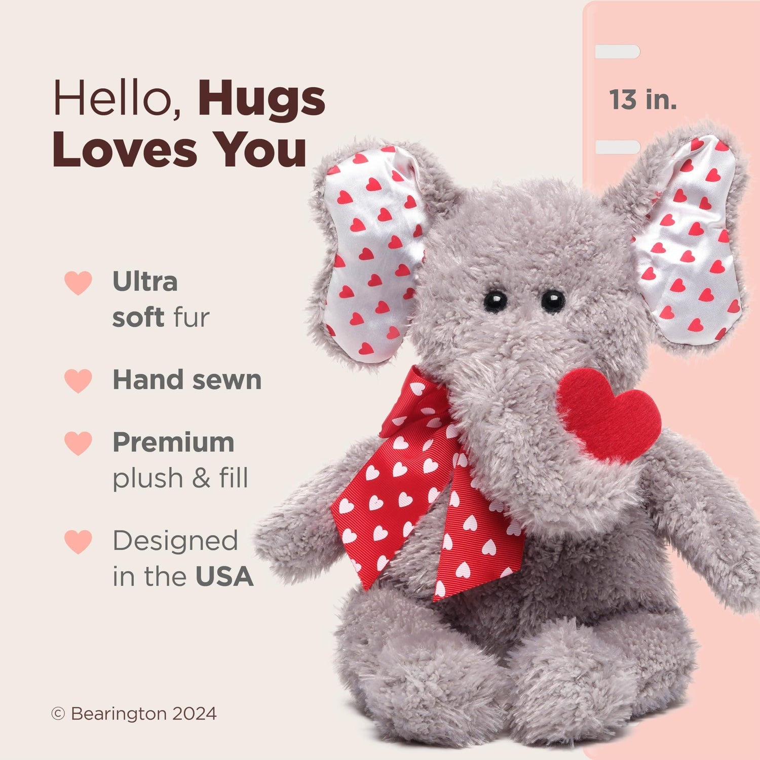 MEET HUGH LOVES YOU: An adorable 13-inch stuffed elephant. With its fluffy, cuddly charm, it's the quintessential Valentine's plush gift for babies, kids, and adults. Let Hugh proclaim your love this Valentine's with the delightful comfort of Valentine stuffed animals.