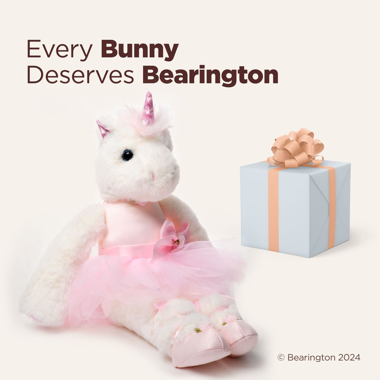 CUDDLY: Gift the perfect cuddly companion! Our unicorn plush toy is snuggle-sized and makes a beautiful room accent. Its huggable body and adorable features make it your go-to cuddle buddy. Also, explore our ballet gifts with ballerina stuffed animals like the ballerina bunny. Graceful and soft, they're ideal for ballet lovers or anyone wanting a cute cuddle buddy.