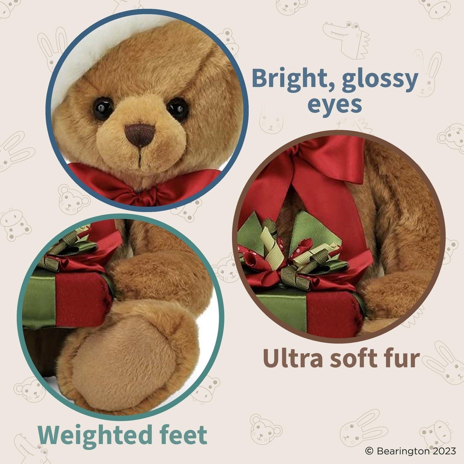PREMIUM MATERIALS: This exceptional teddy bear, handcrafted from luxuriously soft light brown plush fur and filled delicately with plush stuffing, is truly a Christmas treasure. The exceptional Christmas Teddy Bear enthralls with its comforting feel, making it a perennial Christmas bear companion. This entrancing Santa Bear is designed with care, making it an ideal festive gift or a cherished collectible that brings the nostalgia and warmth of Christmas.