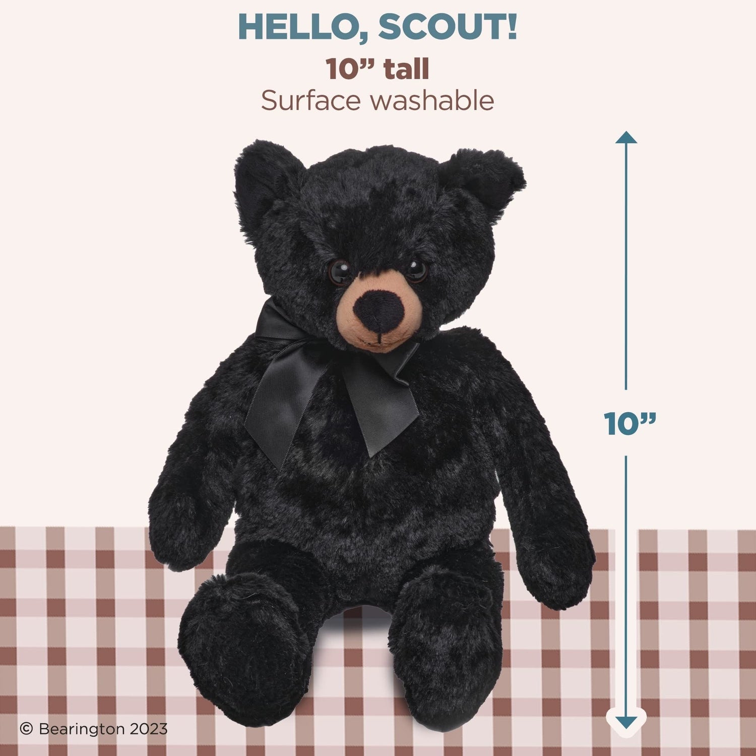 MEET SCOUT: The adorable 16-inch black bear stuffed animal toy designed to bring joy to babies and kids alike. With its irresistibly fluffy and cuddly nature, Scout is more than just cute – it's the perfect snuggle buddy that promises endless moments of comfort and companionship.