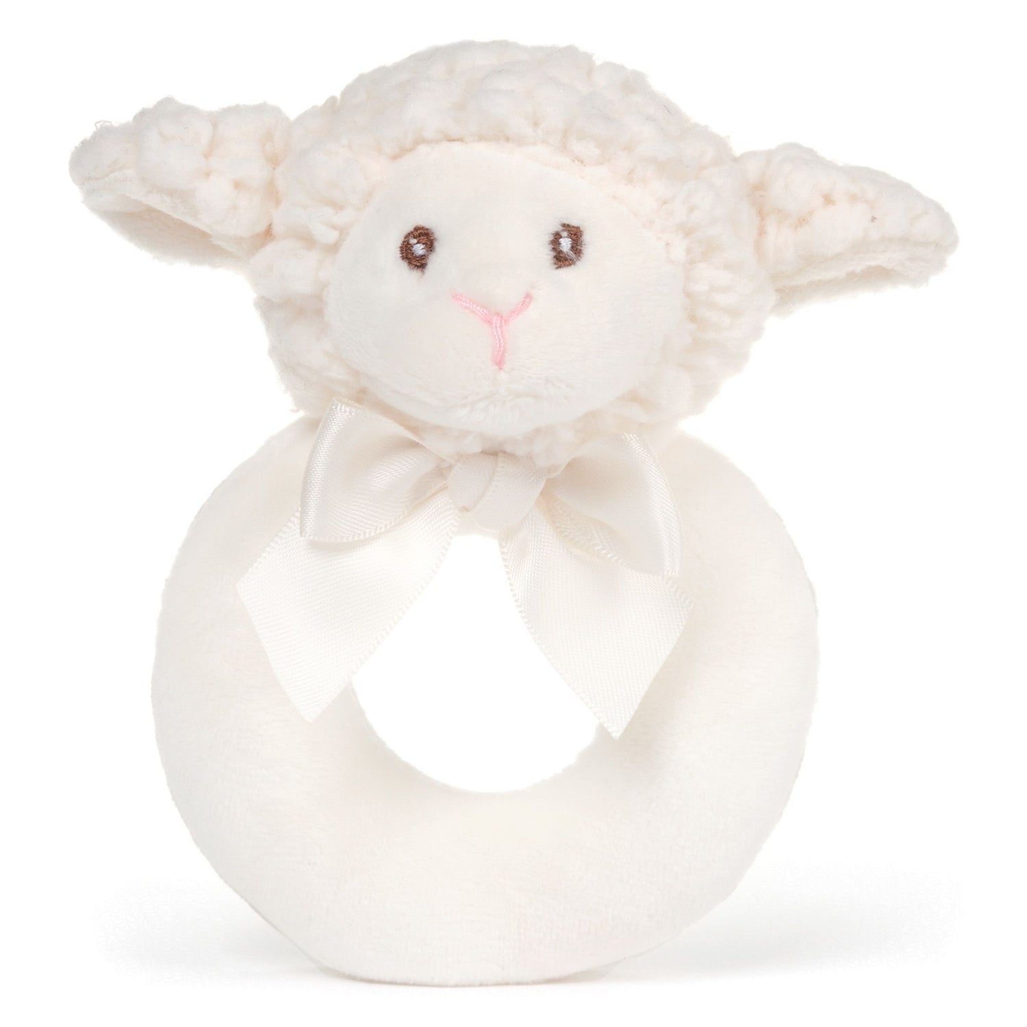 ENGAGING RATTLE FEATURE: This 5.5-inch stuffed lamb comes with a gentle ring rattle, providing sensory stimulation and entertainment for your little one, helping them develop motor skills and hand-eye coordination. The machine washable sheep stuffed animal is made with luxuriously soft cream velour plush materials, embroidered safety eyes, and a silky satin bow.