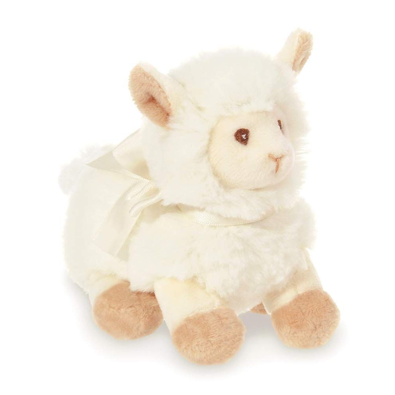 PLUSH LLAMA: Adorably cute 6" long Llama stuffed animal with internal rattle, embroidered safety eyes and cream satin bow