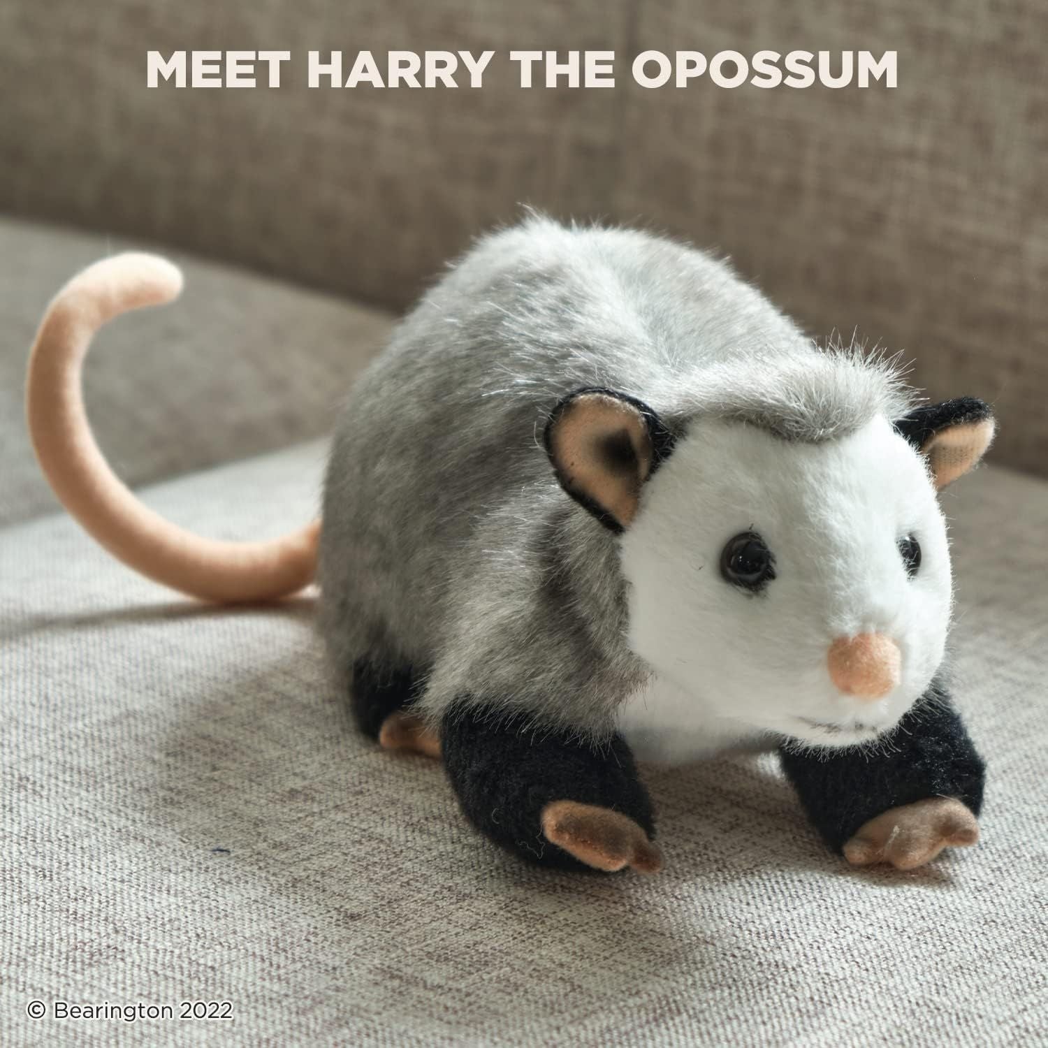 Meet Harry: With ultra-soft faux-fur, realistic colors, sparkly eyes, and the sweetest face, this adorably cute 9” stuffed toy opossum will delight any child or animal lover
