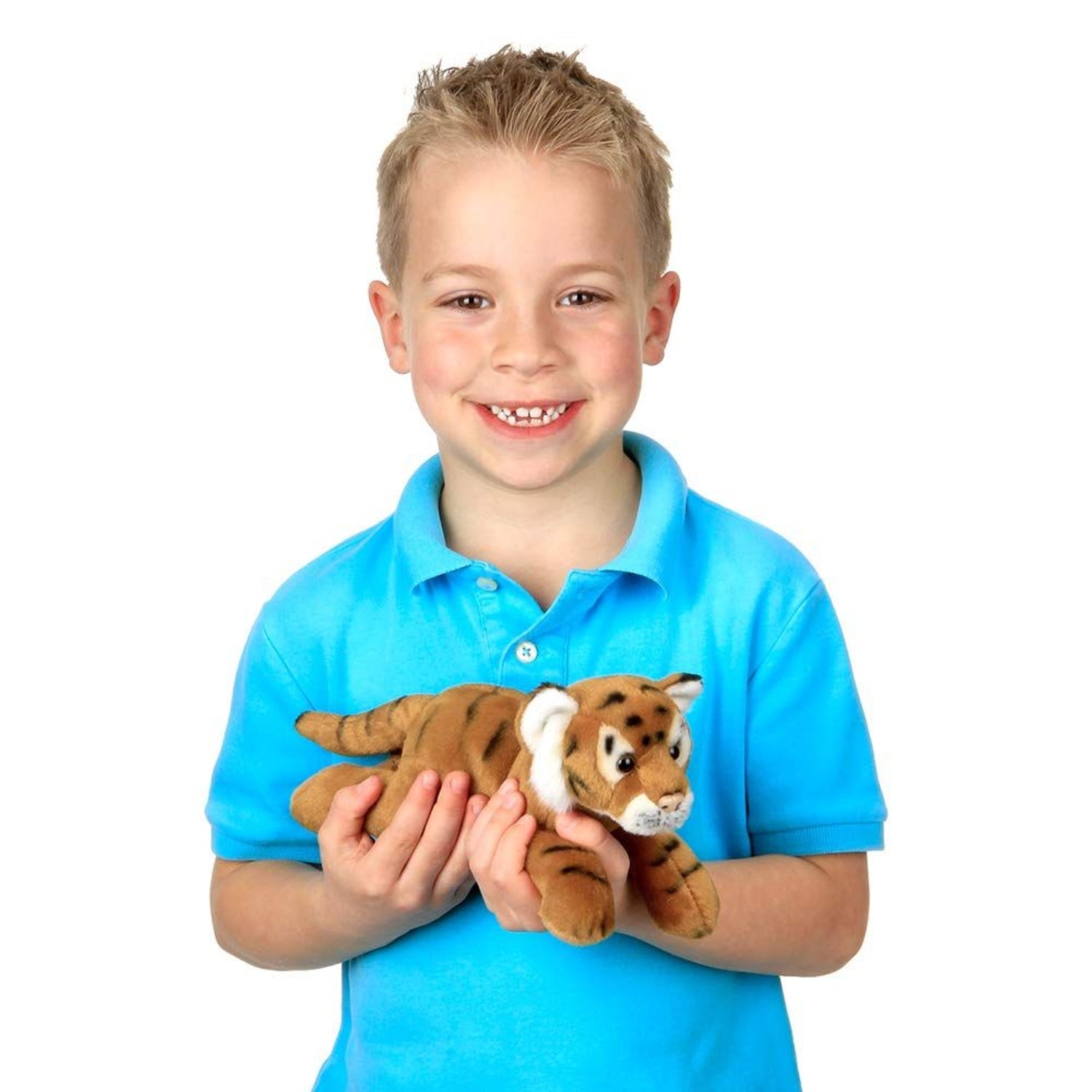 CUDDLY: Delicately stuffed, poseable floppy body and child safe inner bean bag weighted body make this plush tiger a cuddly huggable friend