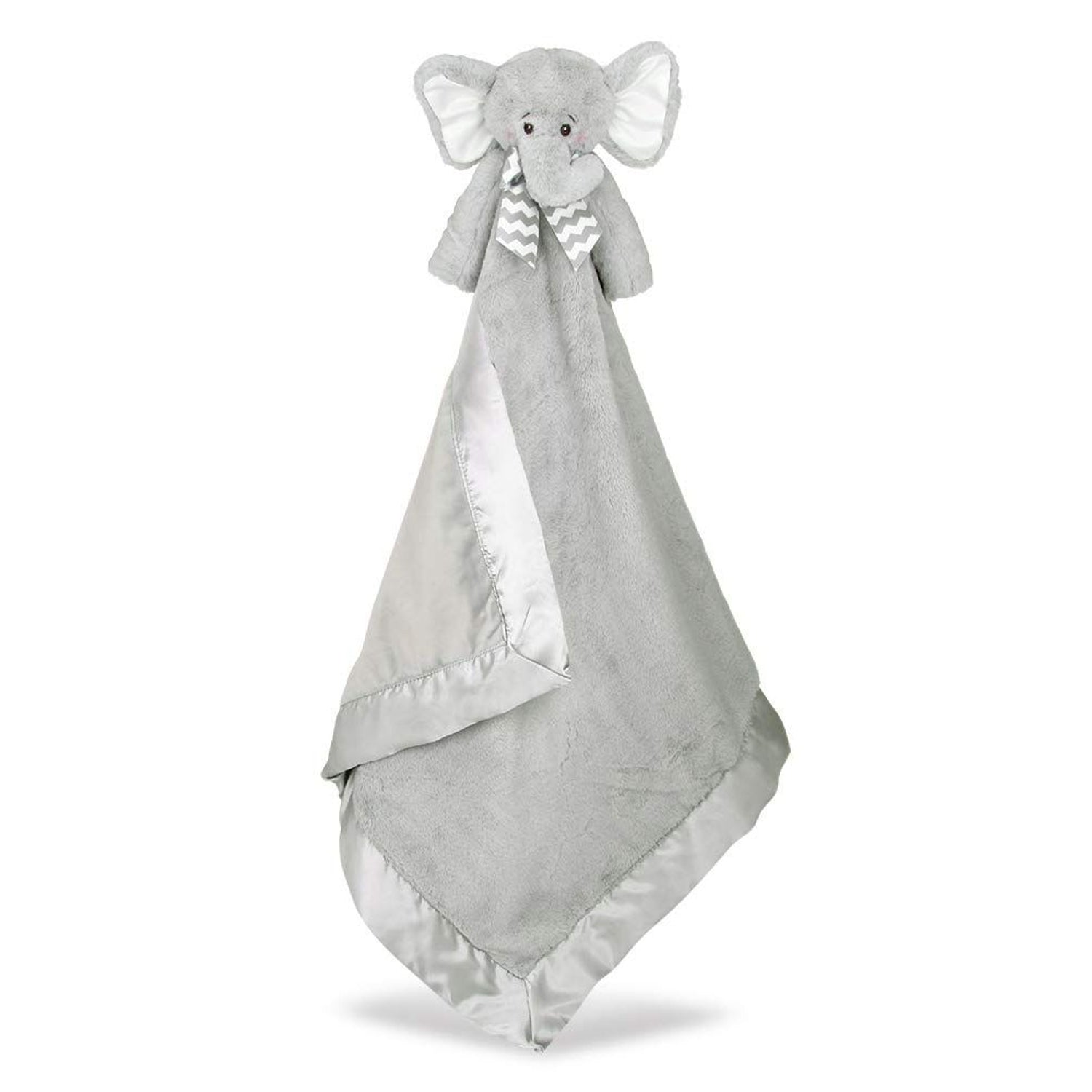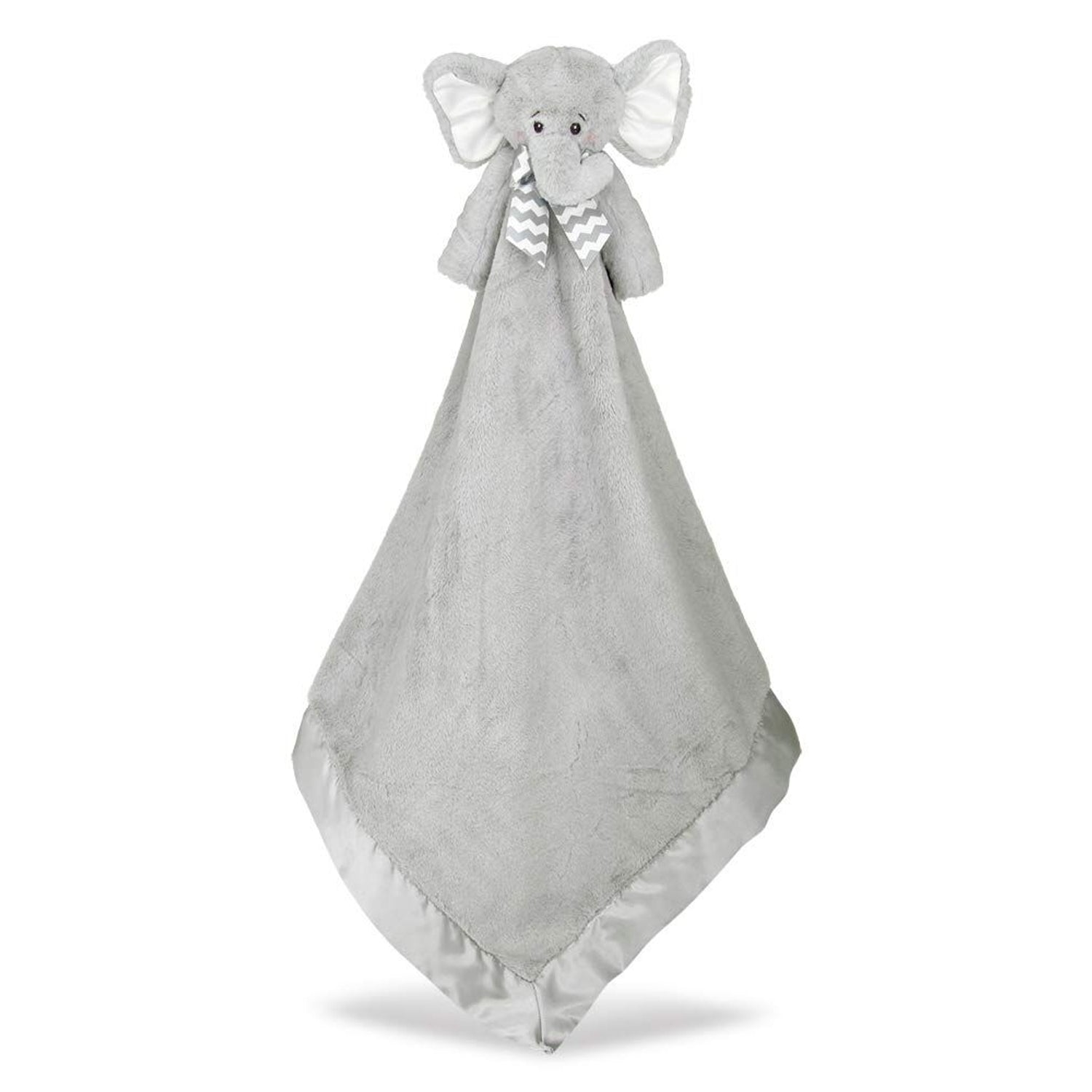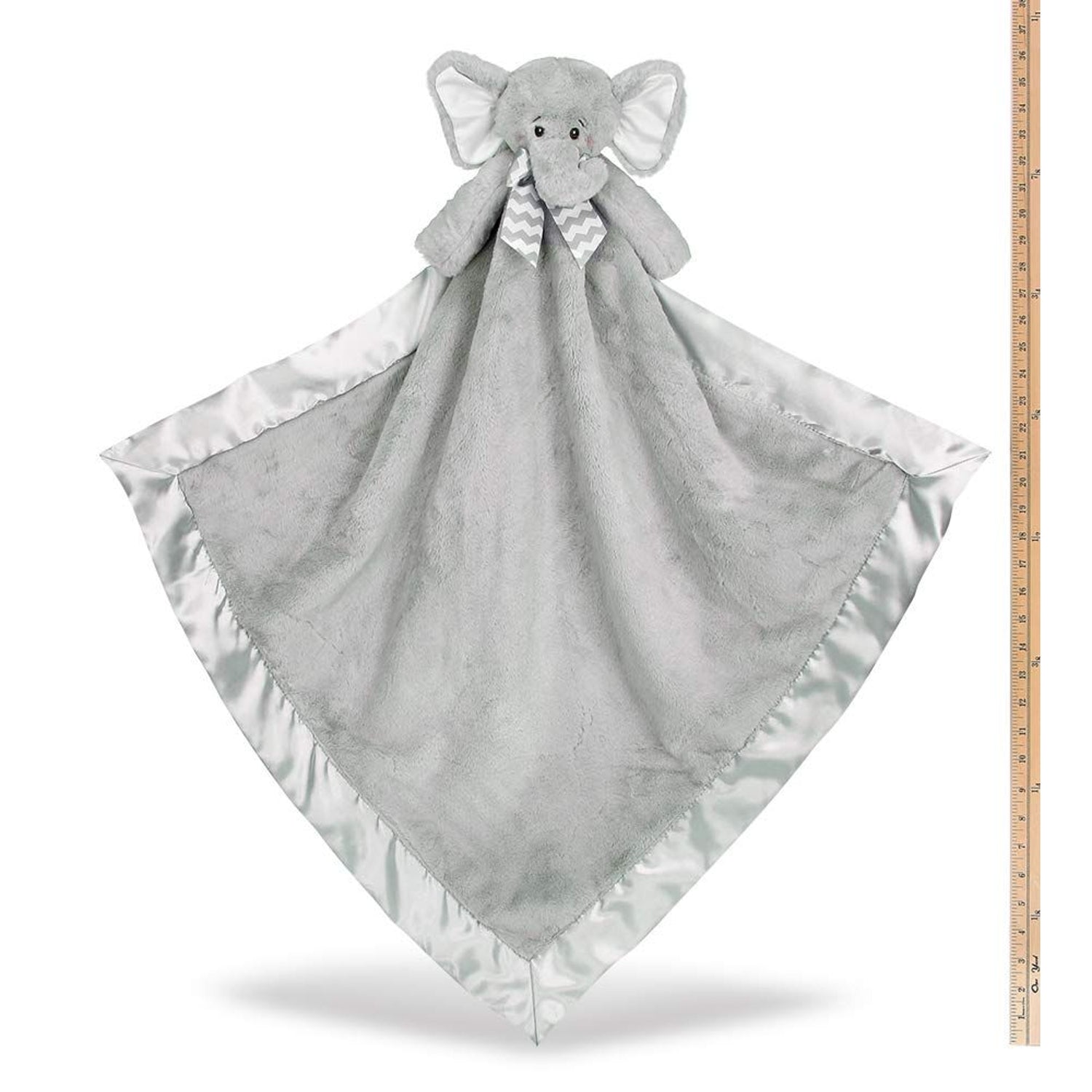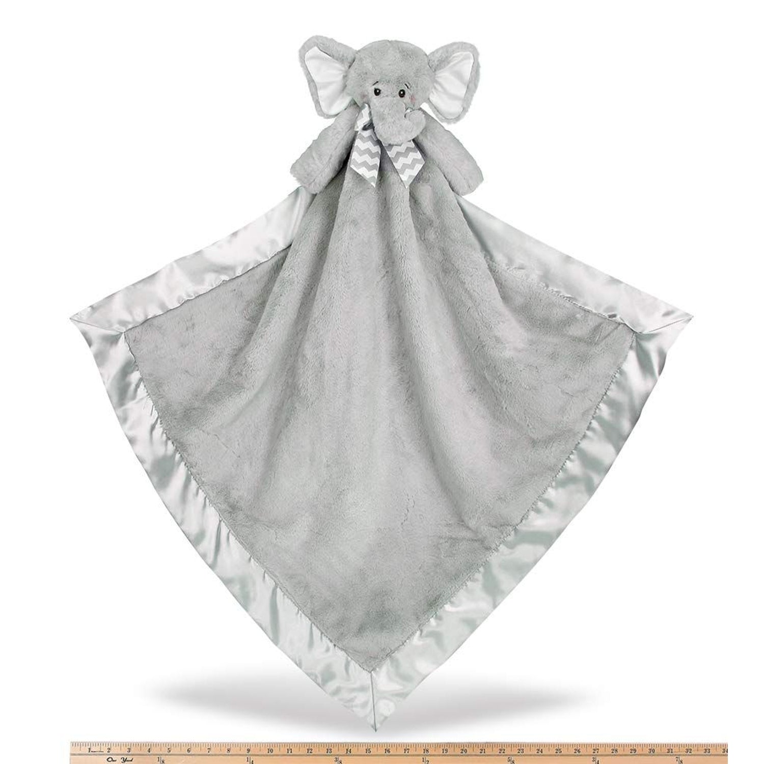 STROLLER SIZE BLANKET: Large blanket (28.5” x 28.5”) is the perfect size for covering infants or toddlers in a stroller or car seat while they snuggle with the plush elephant