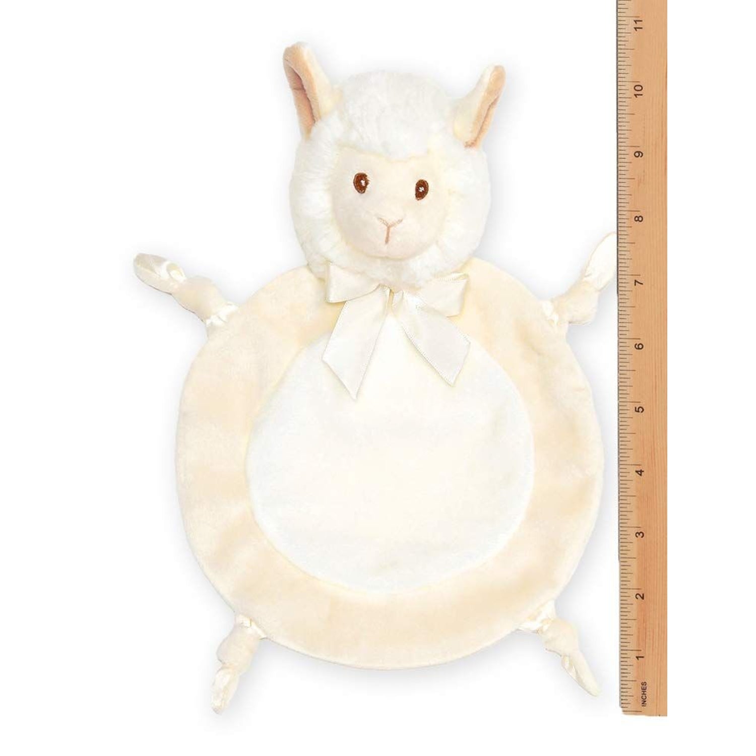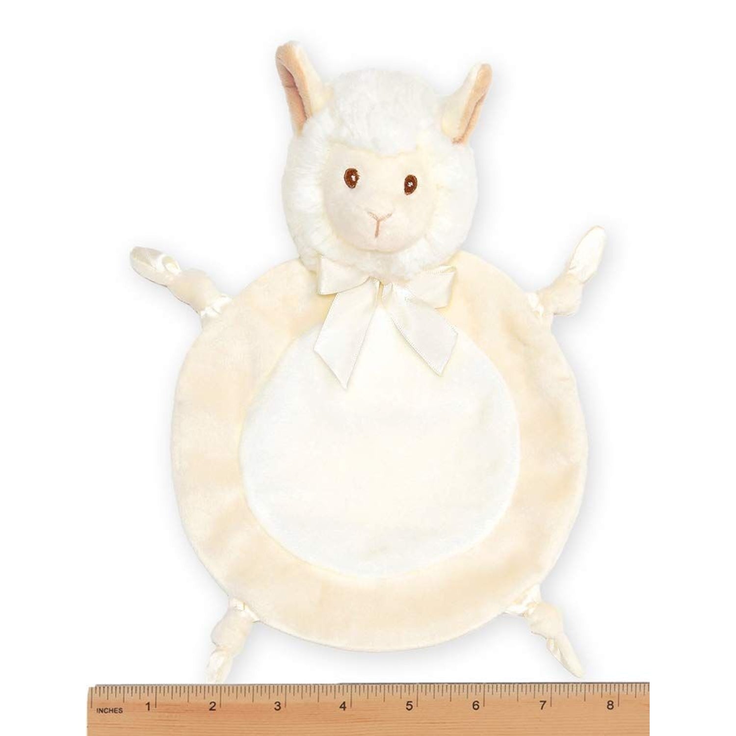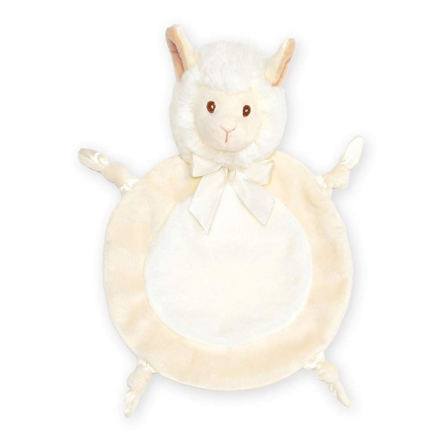 CUTE DESIGN: This llama baby blanket boasts an adorable llama head, knotted satin, and velour legs that are sure to melt your heart. The silky satin accents add a touch of luxury, framing the plush llama beautifully complemented by embroidered safety eyes that ensure a safe and huggable playtime. Complete with a cream satin bow, this security blanket with stuffed animal is an irresistible buddy for your little one's adventures and bedtime snuggles.
